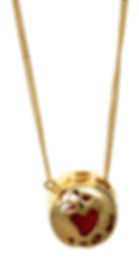 The little heart is a saga seed. Rather than set, drilled or glued onto the container, the seed moves freely so that the wearer can observe its natural qualities. Its heart-like shape is, at times playful, at times alluring, a mirror of the wearer’s very own heart.
